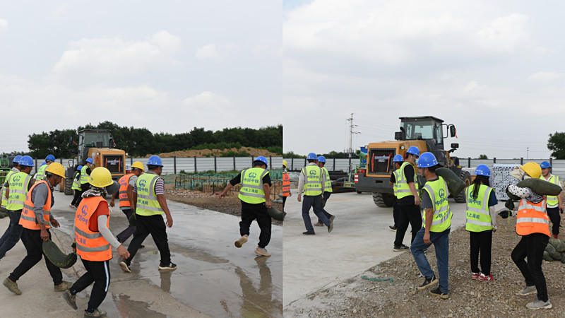 防汛搶險情景模擬:出現(xiàn)強降雨天氣雨水沖破基坑圍堰險情、拉響警報、啟動應(yīng)急事故救援預(yù)案、組織應(yīng)急搶險人員封堵基坑圍堰、啟動備用水泵排查基坑積水、設(shè)置現(xiàn)場警戒并安排專人值守。