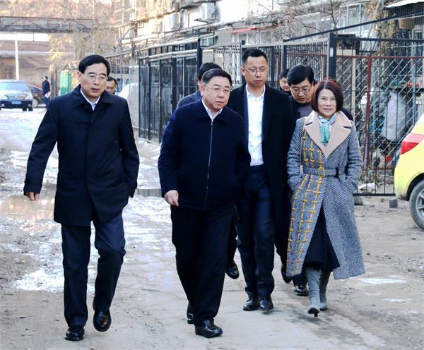 (圖為郭建英代市長、王林副市長陪同董明珠到我市寶碩宿舍站考察格力空氣源熱泵設備的運轉情況)